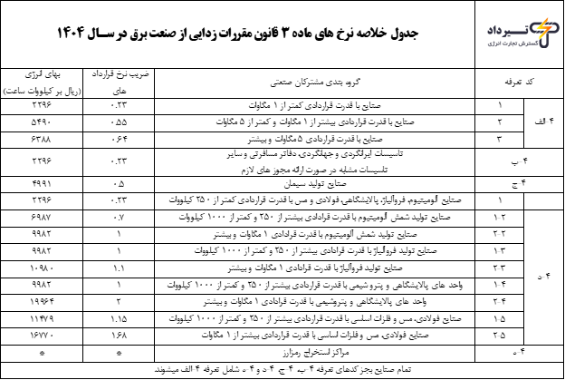 از ابتدای اردیبهشتماه ۱۴۰۴، نرخ قراردادهای تبدیل انرژی از ۷,۲۴۳ ریال به ۹,۹۸۲ ریال به ازای هر کیلوواتساعت افزایش خواهد یافت. همچنین، ضرایب ECA برای صنایع مختلف دستخوش تغییراتی شده است. این امر به این معناست که بهای ماده ۳ قانون مقررات زدایی از صنعت برق مشترکین صنعتی از تاریخ مذکور بر اساس نرخها و ضرایب جدید محاسبه خواهد شد.